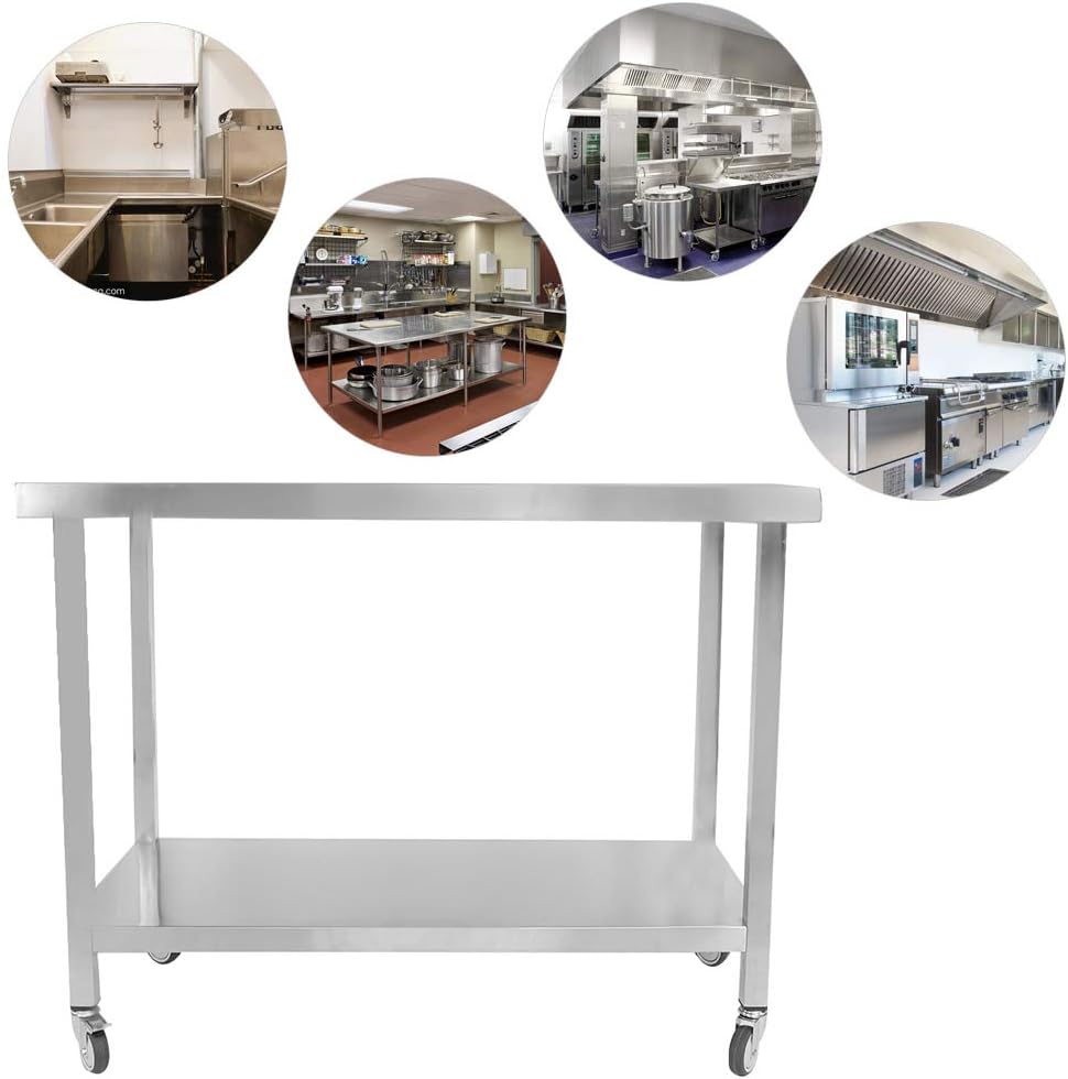 for "Edelstahl Gastro Küche ~ Kukoo Gastro Regal Aufsatzbord Doppelregal Aufsatzboard Gastronomie Kuche Arbeitstisch Edelstahl 100 Kg Tragkraft Tische Kuche Haushalt Wohnen"